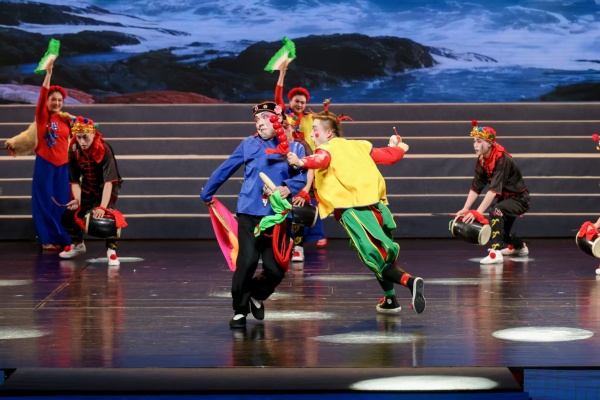 舞臺(tái)上,鑼鼓一響便點(diǎn)燃全場(chǎng)。演員們身著鮮艷的膠東特色服飾,舞步剛勁有力,神態(tài)生動(dòng)鮮活:詼諧風(fēng)趣的丑婆、氣勢(shì)十足的鼓子、身姿靈動(dòng)的隊(duì)員們配合默契,一扭一跳、一招一式都充滿力量,將海陽(yáng)大秧歌熱烈奔放、質(zhì)樸豪爽的氣質(zhì)展現(xiàn)無(wú)遺,臺(tái)下掌聲與喝彩聲此起彼伏。