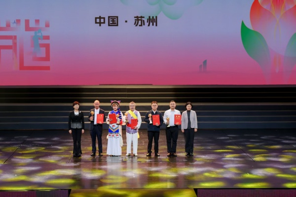膠東在線3月31日訊(通訊員 姜驍宸、姜祥)春到江南,藝聚姑蘇。3月30日晚,蘇州文化藝術(shù)中心大劇院內(nèi)氣氛熱烈、掌聲不斷,第十七屆中國(guó)民間文藝山花獎(jiǎng)?lì)C獎(jiǎng)典禮在這里盛大舉行。由山東省民間文藝家協(xié)會(huì)推送、海陽(yáng)市文聯(lián)組織創(chuàng)作的廣場(chǎng)歌舞《老少爺們扭起來(lái)》迎來(lái)高光時(shí)刻,榮獲“山花獎(jiǎng)·優(yōu)秀民間藝術(shù)表演作品”,代表隊(duì)登臺(tái)領(lǐng)獎(jiǎng)并現(xiàn)場(chǎng)展演,海陽(yáng)大秧歌在全國(guó)最高文藝舞臺(tái)上大放光彩。